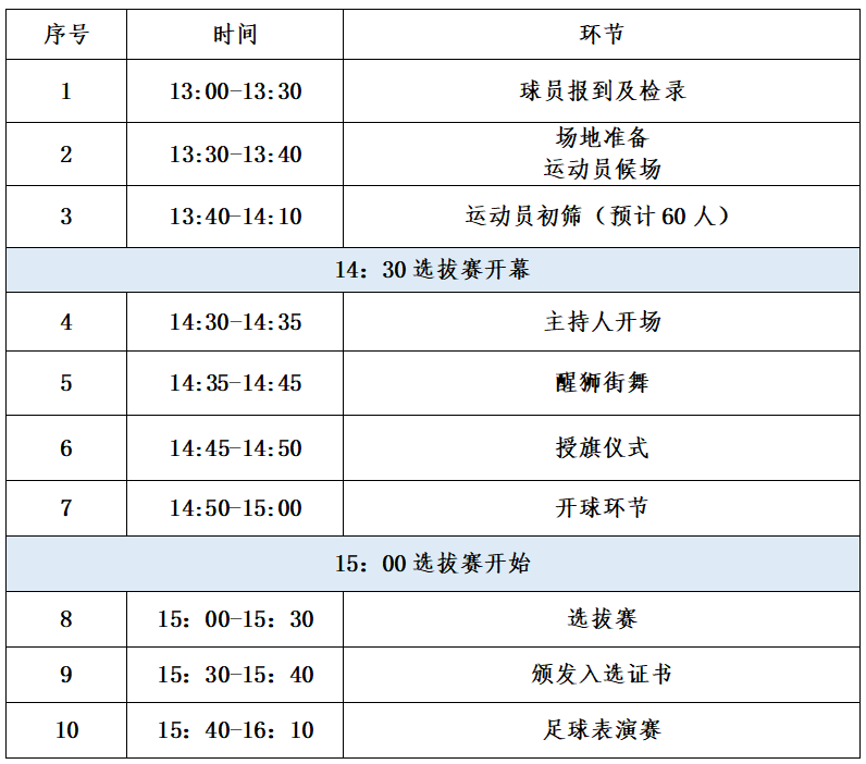 第一届顺德“德甲”足球联赛杏坛赛区选拔赛活动总流程: